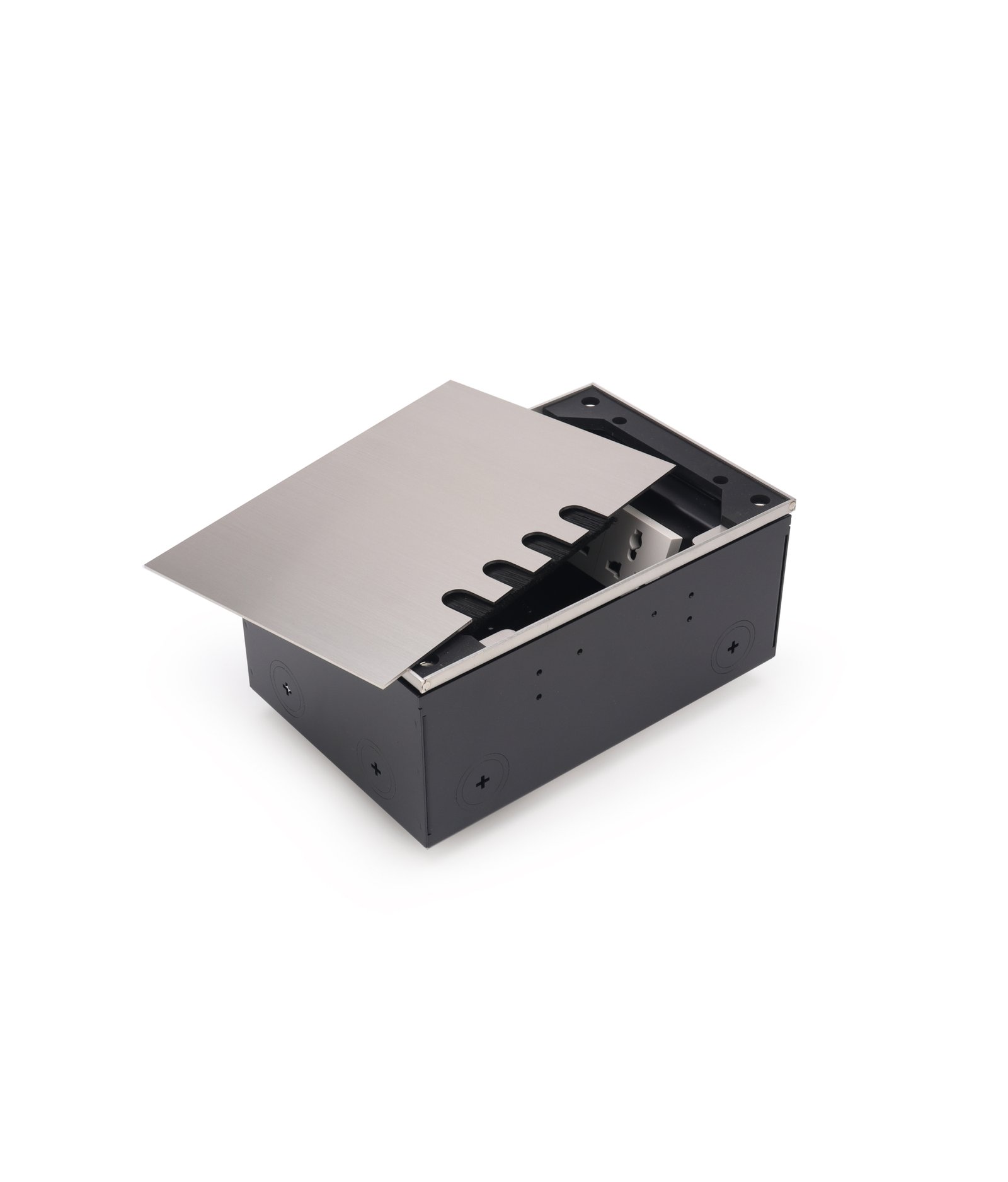– Leave the brushed SS surface flush with finished floor -SS lid flush